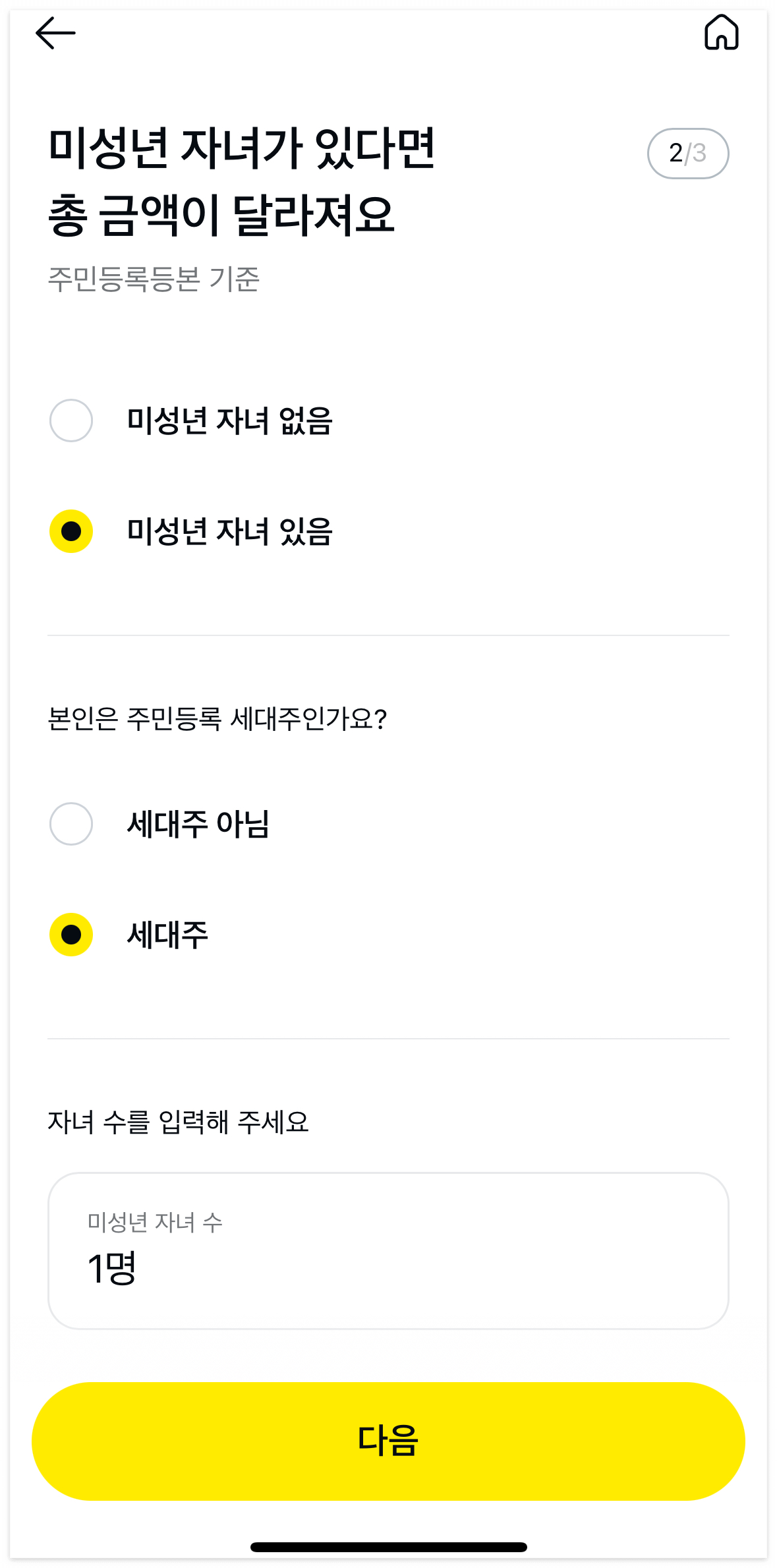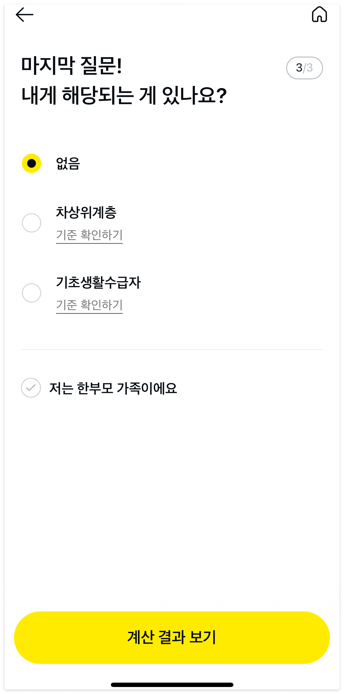 가족 구성, 소득 수준만 선택하면