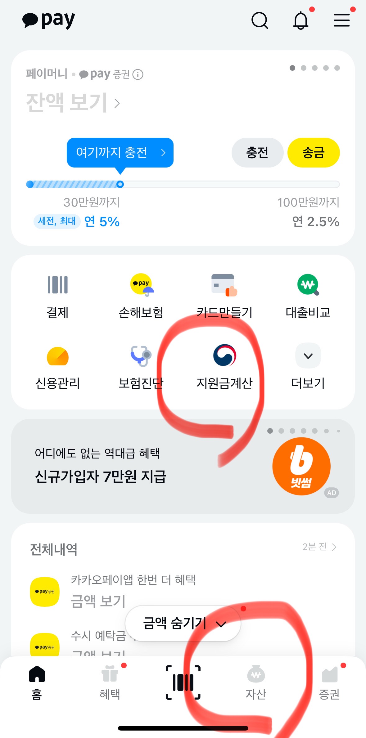 카카오톡에서 카카오페이 홈으로 이동해 주세요.